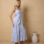 The Selene Tiered Print Maxi Dress takes our best-selling silhouette and refreshes it with beautifully curated prints inspired by coastal escapes. Designed with the same gathered halter neckline and relaxed, tiered shape you love, this flowy maxi moves effortlessly with every step.