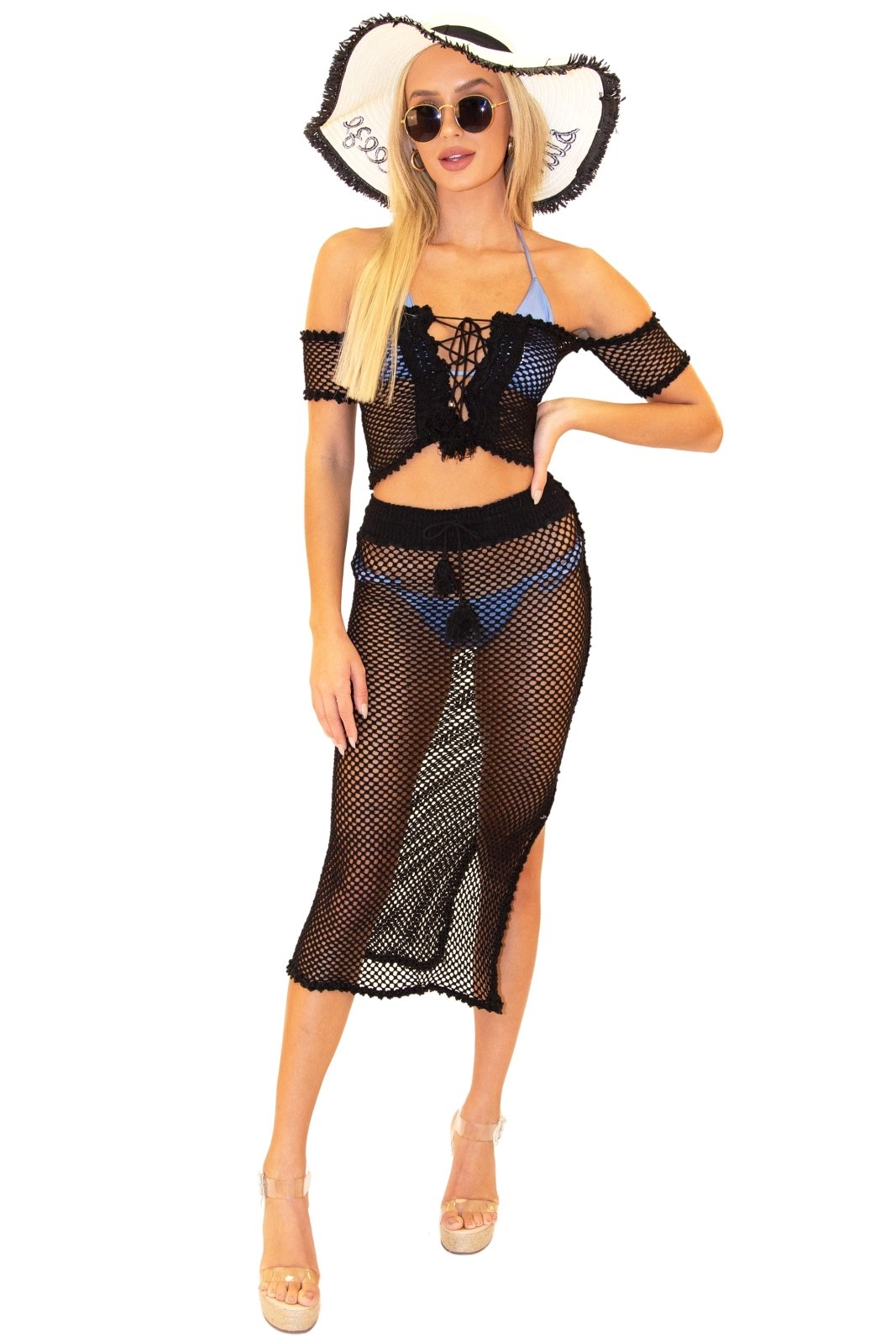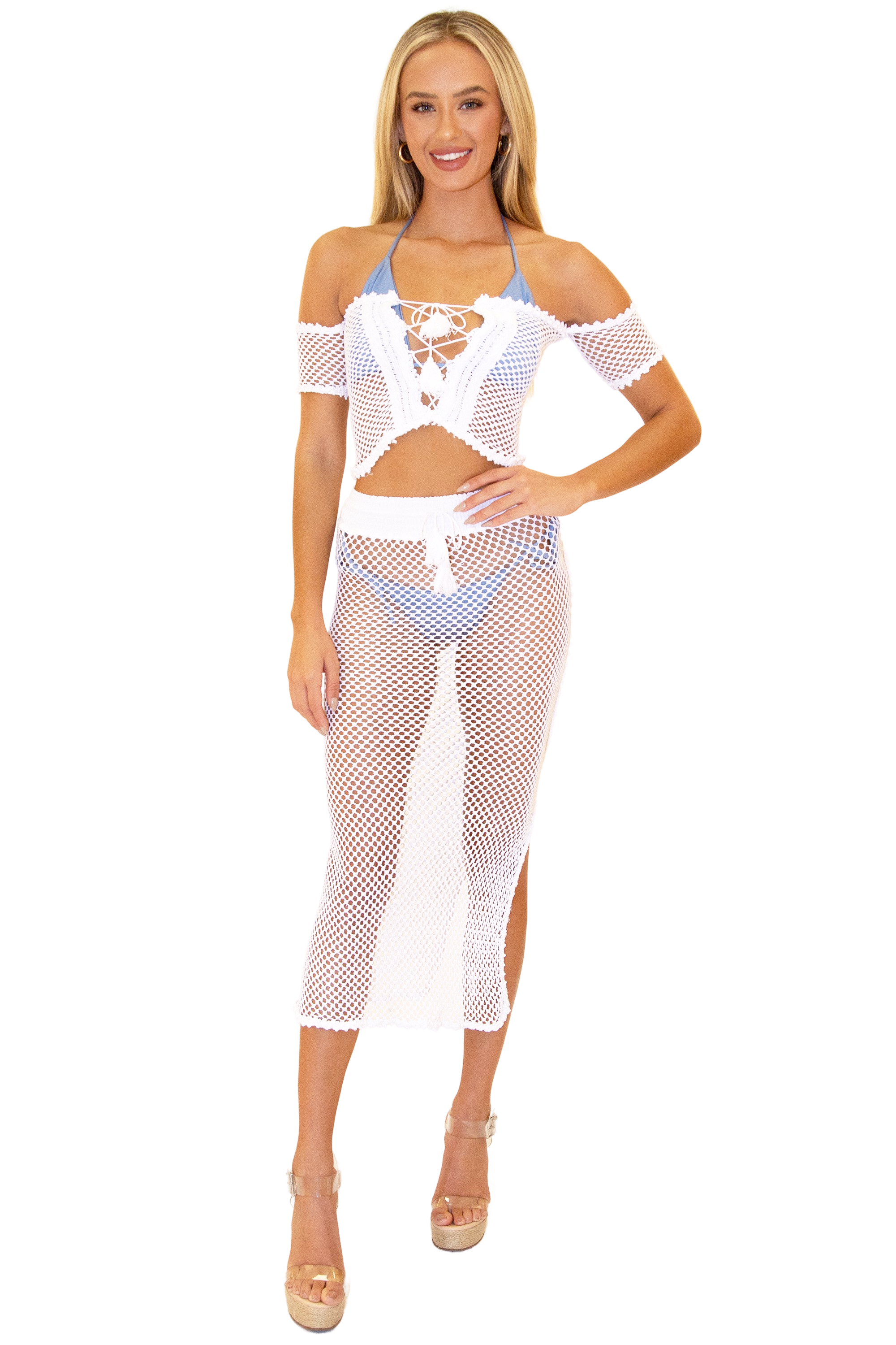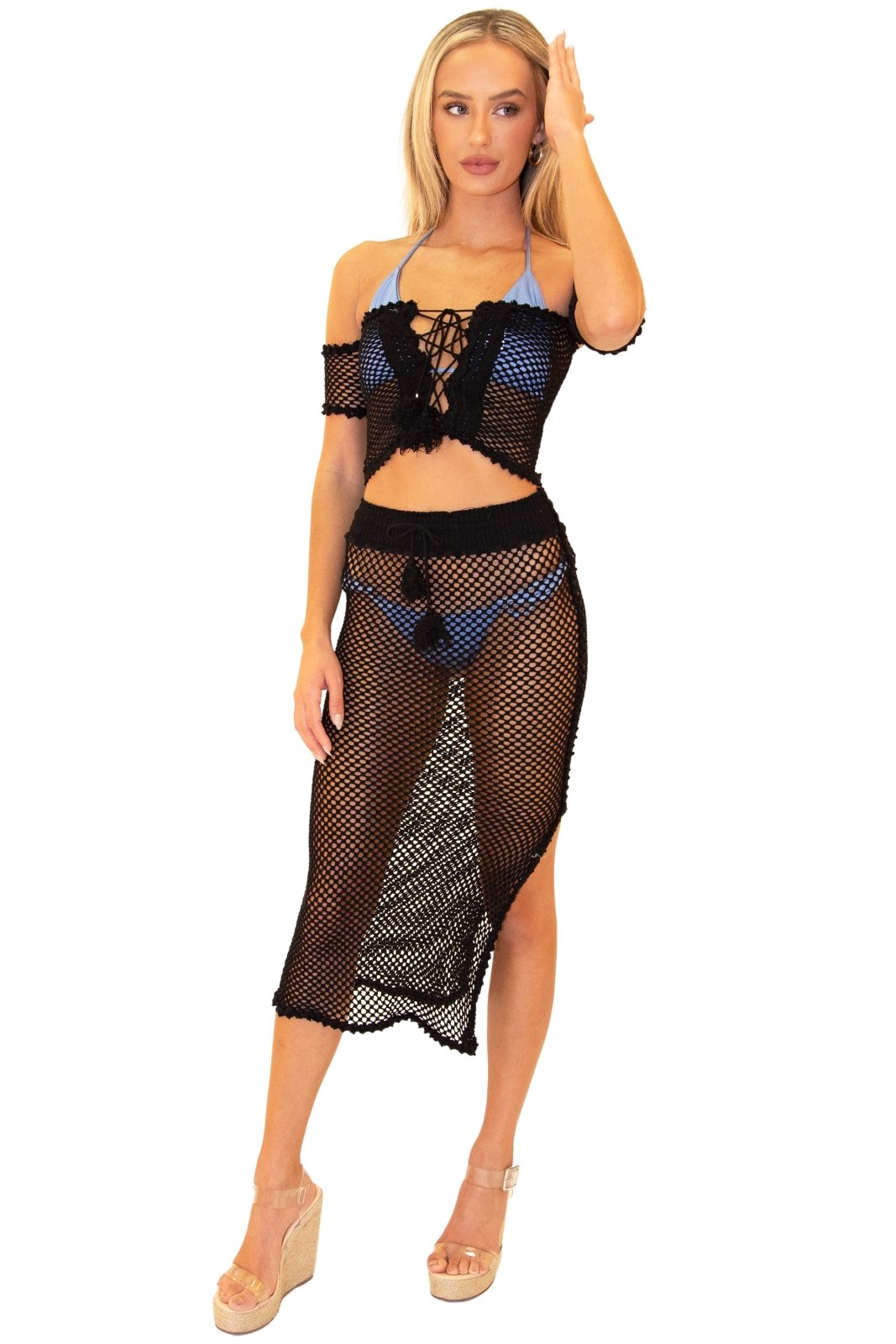 'Kylie' Off Shoulder Tie-Front Cotton Mesh Crop Top
