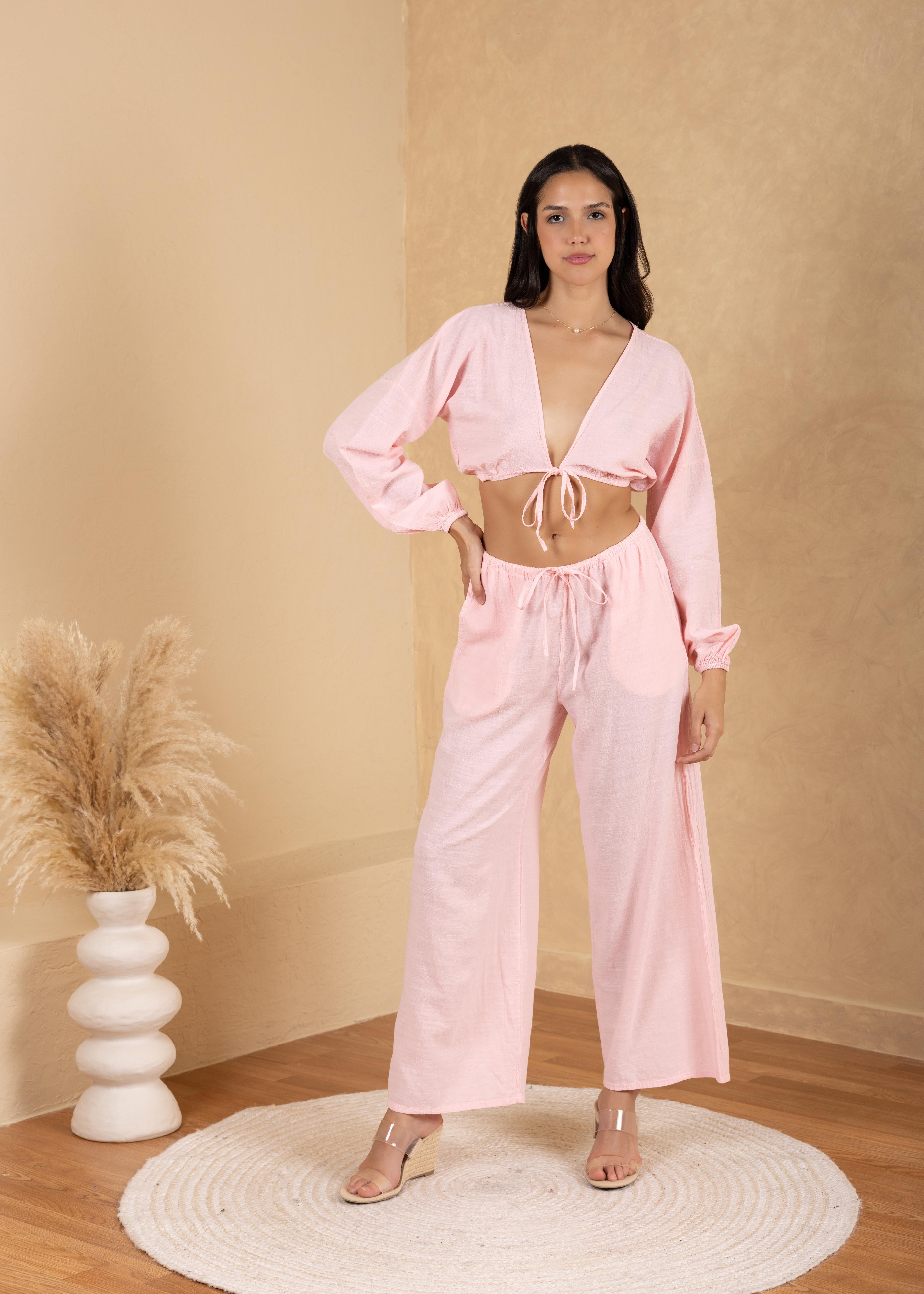 Light, flowy, and made for the tropics. The Solana pants feature a relaxed wide-leg silhouette and adjustable drawstring waist for an easy, flattering fit. Pair with the Solana Tie-Front Crop Top for an effortlessly chic vacation-ready look.