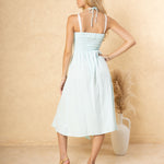 Bestseller for a reason, the 'Arabella' Maxi Dress is your go-to for statement-making resort looks. Featuring a stunning crochet mesh bodice with intricate panel detailing and dual high side splits, this dress brings elegance with a daring edge. Adjustable tie-back halter offers support, while the smocked back ensures a flattering, flexible fit. Light, breathable, and undeniably eye-catching, ‘Arabella’ is perfect for poolside lounging or golden hour getaways.