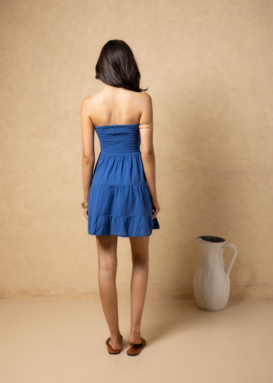 Crafted from lightweight, breathable cotton, Giselle is finished with a smocked back for a comfortable, flexible fit and a softly flared tiered skirt that moves beautifully with every step. The solid color palette highlights the silhouette, making it endlessly versatile for styling from day to night.