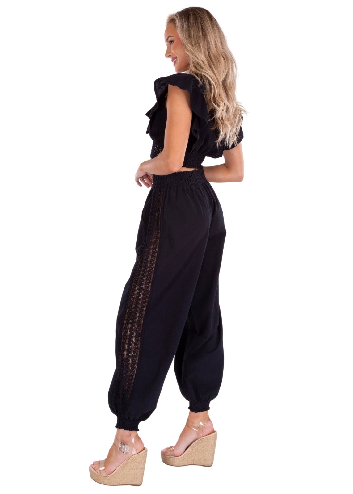 Plunge V-Neck Crochet Neckline & Hem Flare Ruffle Crop Top