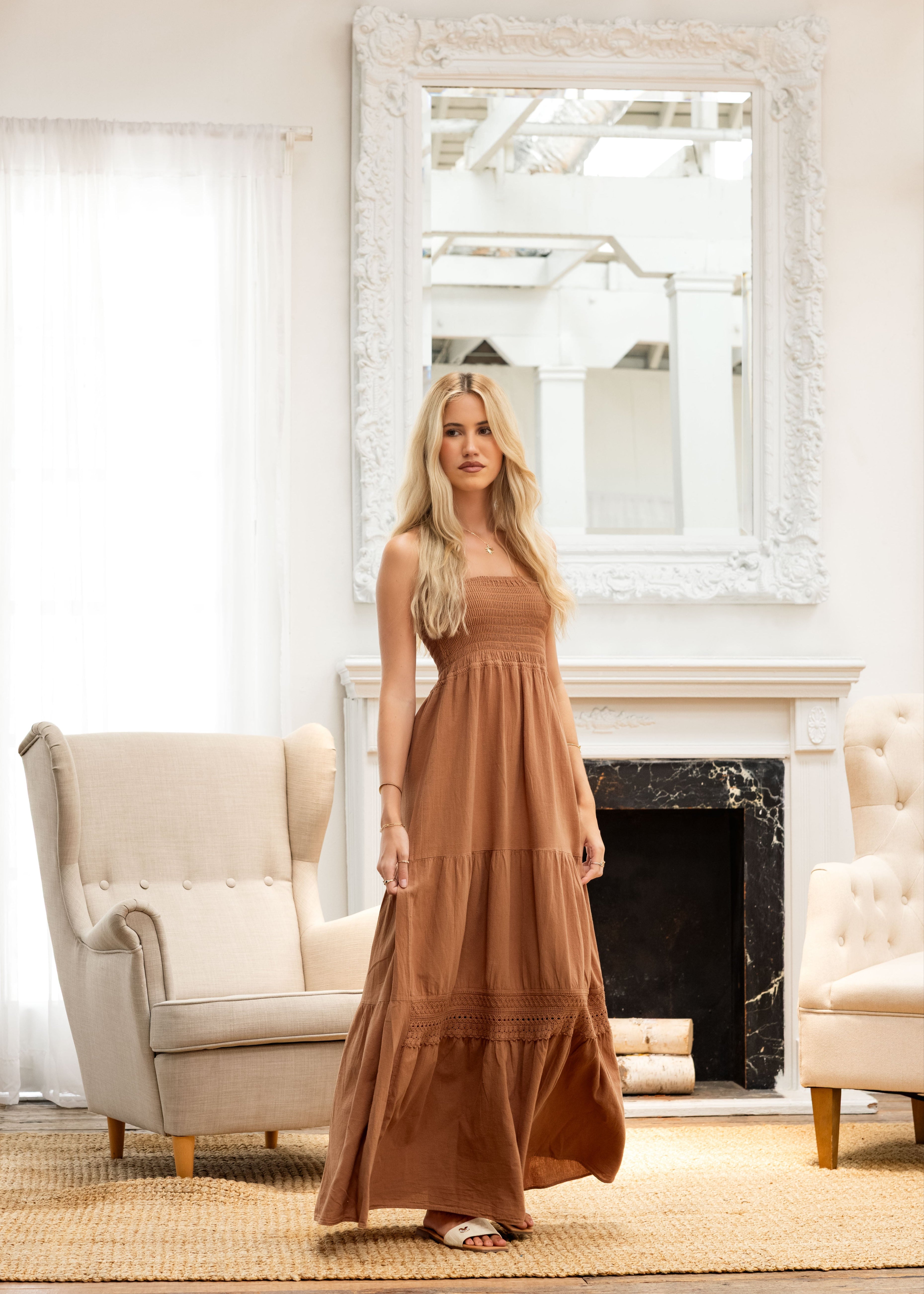 Meet your new go-to for sun-drenched days and effortless nights. The ‘Bliss’ Strapless Maxi Dress is designed to move with you, soft, breezy, and endlessly versatile. Featuring a comfortable smocked bodice and a flowing tiered skirt, it’s the kind of piece you’ll reach for from beach walks to brunch dates.