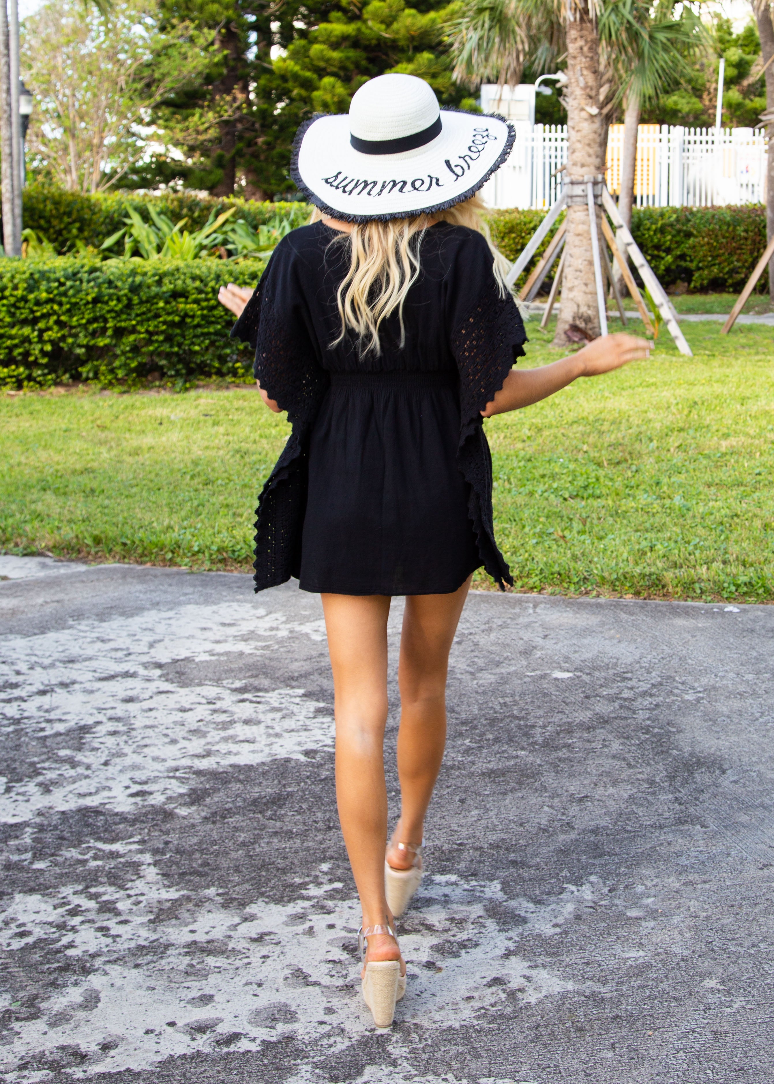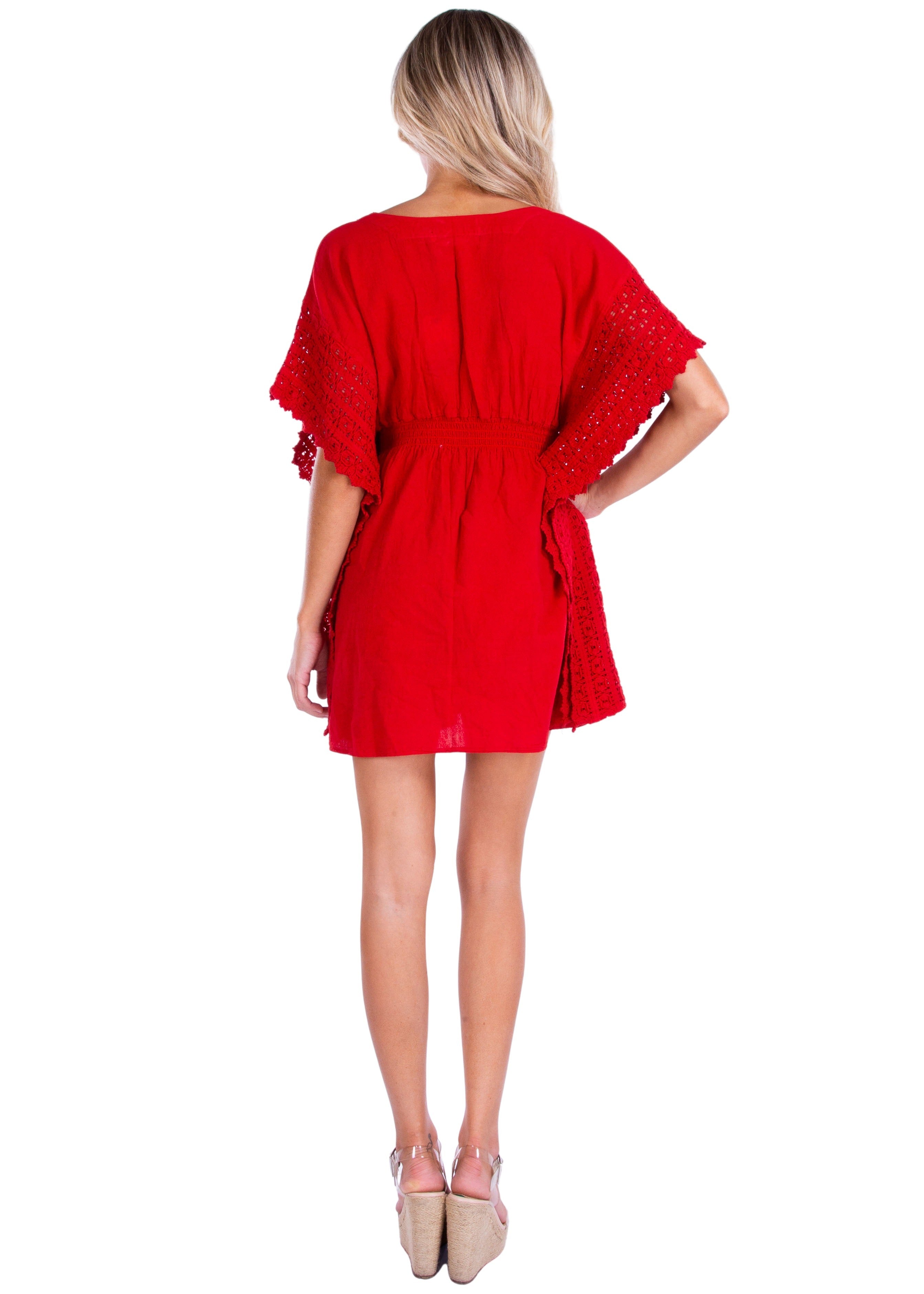 Meet the 'Isla' Cover Mini Dress, a timeless best-seller designed for effortless coastal style. This breezy mini dress features a plunging V-neckline, fluttery crochet-trimmed sleeves, and a flattering empire waist that cinches softly for a feminine silhouette. Crafted in breathable cotton, it's the perfect lightweight layer to slip on over swimwear or wear solo from beach to brunch. Available in a variety of hues to match every mood and destination.