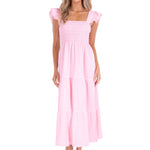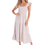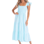 Romantic, effortless, and endlessly flattering, the 'Christina' Smocked Midi Dress is your go-to for everyday ease with an elevated touch. Featuring soft ruffle sleeves, a stretchy smocked bodice, and a breezy tiered skirt, this dress is crafted from 100% cotton for breathable comfort. Whether you're heading to brunch, a beach day, or a casual evening out, this versatile midi dress brings charm and comfort in equal measure.